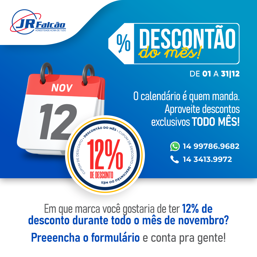 Na JR Falcão você tem desconto todo mês, o mês todo!